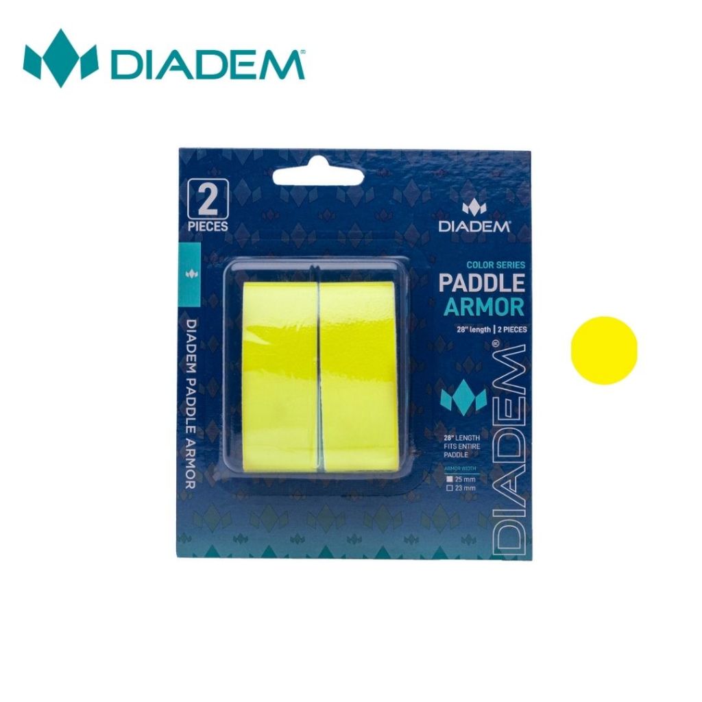 The Diadem Paddle Armor is designed to fit snugly around the edge of your pickleball paddle. The 25mm width fits perfectly on the 19mm edgeless Warrior v2, or any 16mm paddle with an edge guard. The 20mm width fits perfectly on any paddle thinner than 16mm, including our Icon V2 and A52. Its durable and flexible construction acts as a reliable shield, effectively preventing any scratches, chips, or dings that could potentially compromise the integrity and performance of your paddle.