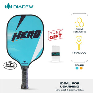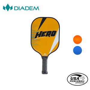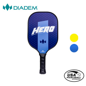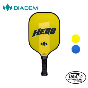 The DIADEM HERO PADDLE is the perfect paddle for the first time pickleball player. Low cost and comfortable to use, this paddle is ideal to learn the game of pickleball with. Its wide face gives you the maximum surface area to contact the ball as you are learning.