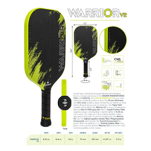 The Warrior v2 is the ultimate paddle for players looking to dominate the court with power, control, balance, and spin production. Featuring an etched raw carbon T700 face, this paddle is designed to deliver maximum performance, spin, and precision in every shot you make.